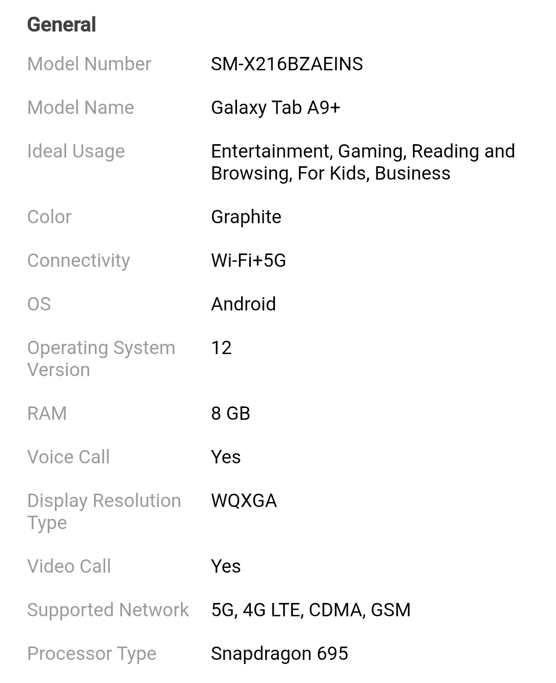 📱 Samsung Galaxy Tab A9+ (8GB/128GB, Wi-Fi + 5G Calling)