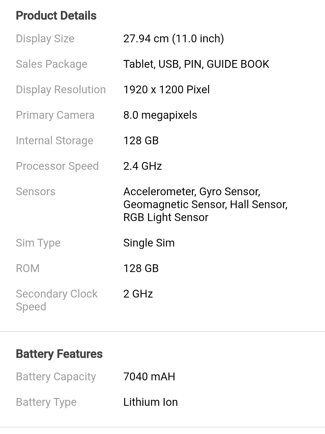 11.0-inch TFT LCD, 1920 × 1200 pixels, 90Hz refresh rate, Corning Gorilla Glass protection.
