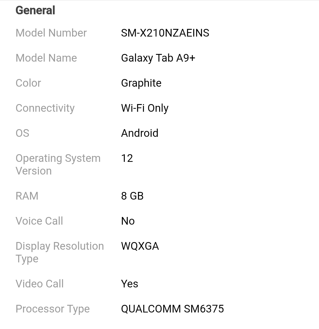 📱 Samsung Galaxy Tab A9+ (8GB/128GB, Wi-Fi Only)
