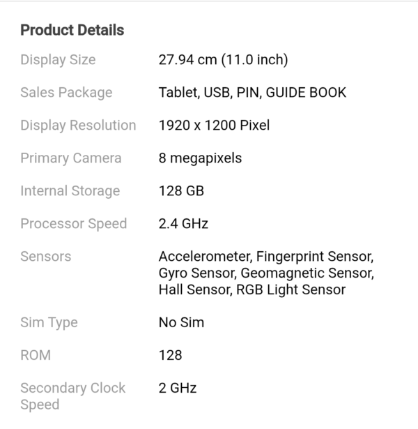11.0-inch TFT LCD, 1920 × 1200 pixels, 90Hz refresh rate, Corning Gorilla Glass protection.
